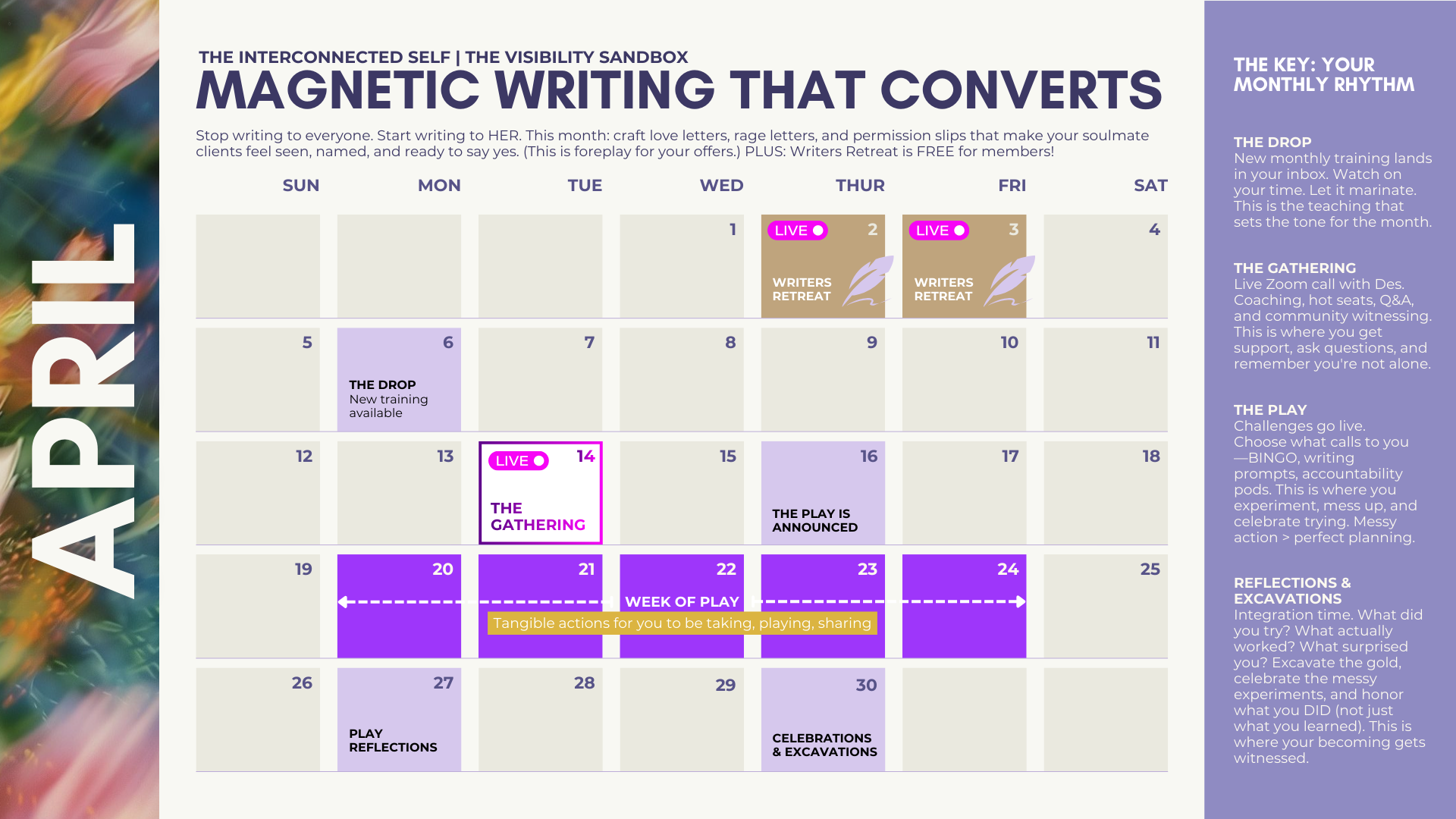 Join The Sandbox. Dive in. Show up to the first live call. Explore the trainings. Feel into the community.